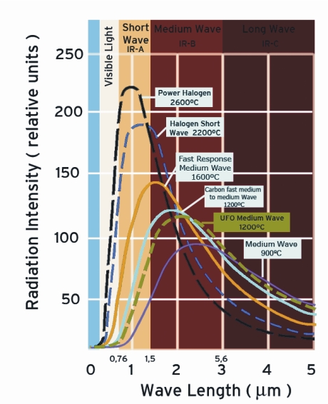 Rozdělení infračervených zářičů podle vyzařované vlnové délky
